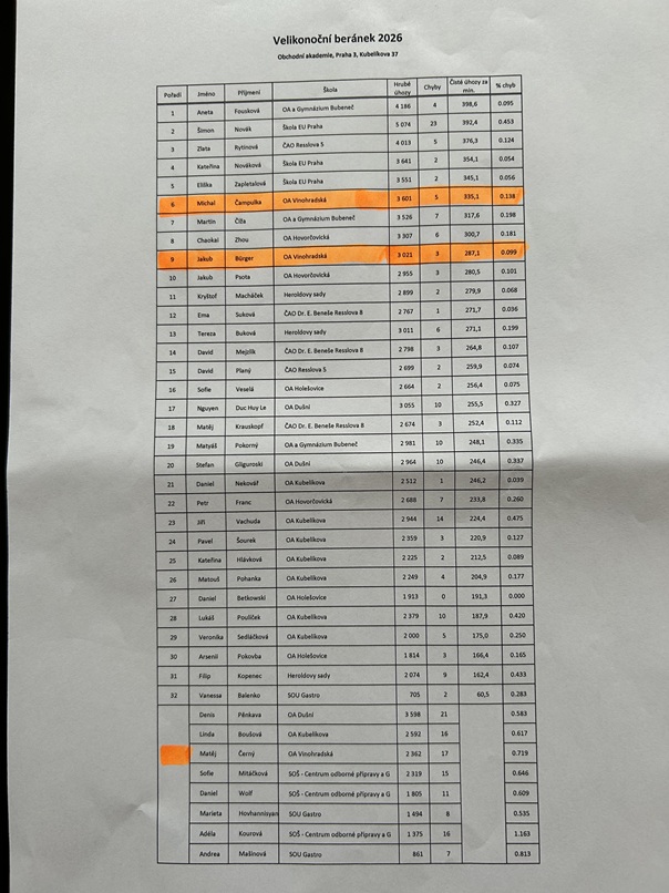 Naši školu reprezentovali 3 studenti. Michal Čampulka z 2. B obsadil 6. místo a